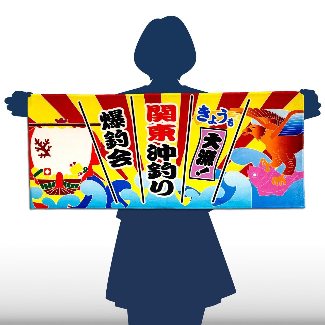 『きょうも大漁!関東沖釣り爆釣会』ロゴを全面プリントしたカンバク フルカラーフェイスタオルが登場。