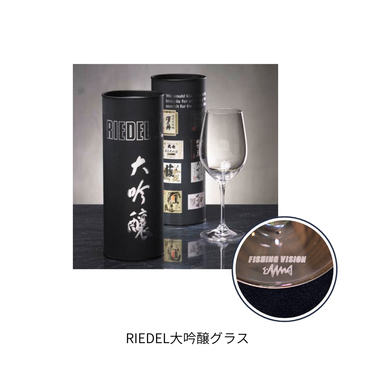 RIEDEL大吟醸グラスは、プレートに釣りビジョンロゴ入り