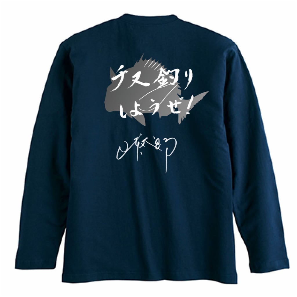 チヌ道一直線 チヌ釣りしようぜ! 長袖Tシャツ ネイビー